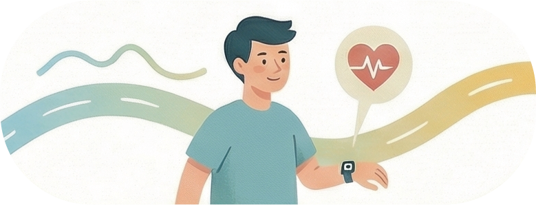 心拍数を管理し、体に負担をかけず心地よいペースで歩きます。